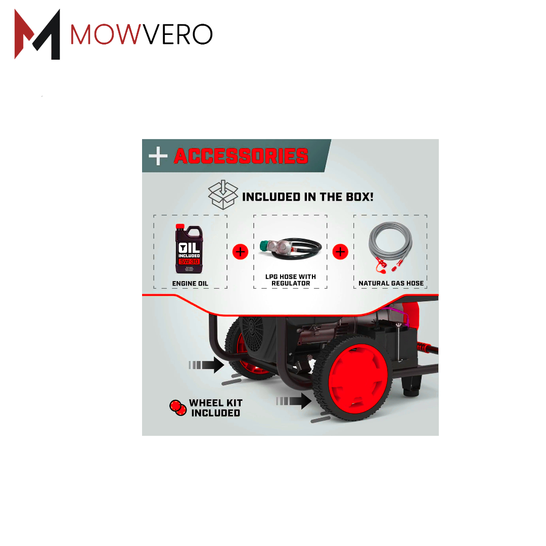 Backed by a 3-year limited warranty and lifetime technical support, the Mowvero 15,000/12,000-Watt Portable Generator is the ultimate powerhouse for residential, commercial, or emergency use.